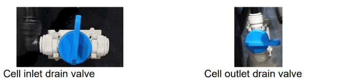 Step 4: Drain the cell by opening the drain valves at the inlet and outlet to the cell, allow to drain then close the valves.