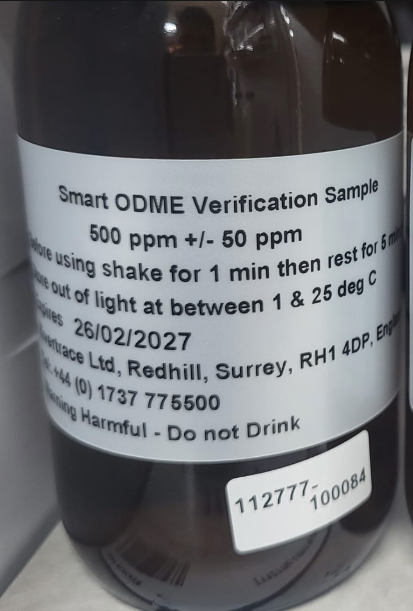 Take the bottle of 500ppm Calibration Check Solution, shake for one minute to obtain uniformity then leave it to stand for a further 5 minutes to release any entrained bubbles.