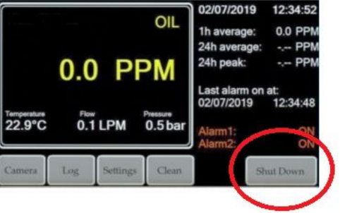 On the touch screen, press and hold the shutdown button, ensure the monitor performs its shutdown sequence.